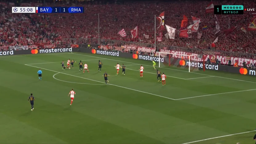 Нельзя сказать, что Реал прямо таки развалился на фоне этих неудач, однако впереди команда ничего интересного не создавала. Позади же постоянно возникали пожары, которые Бавария обязана была конвертировать в голы. Так, на 66-й минуте Кейн пробивал с левого края штрафной с рикошетом от Рюдигера – мяч прошел рядом с дальней штангой!