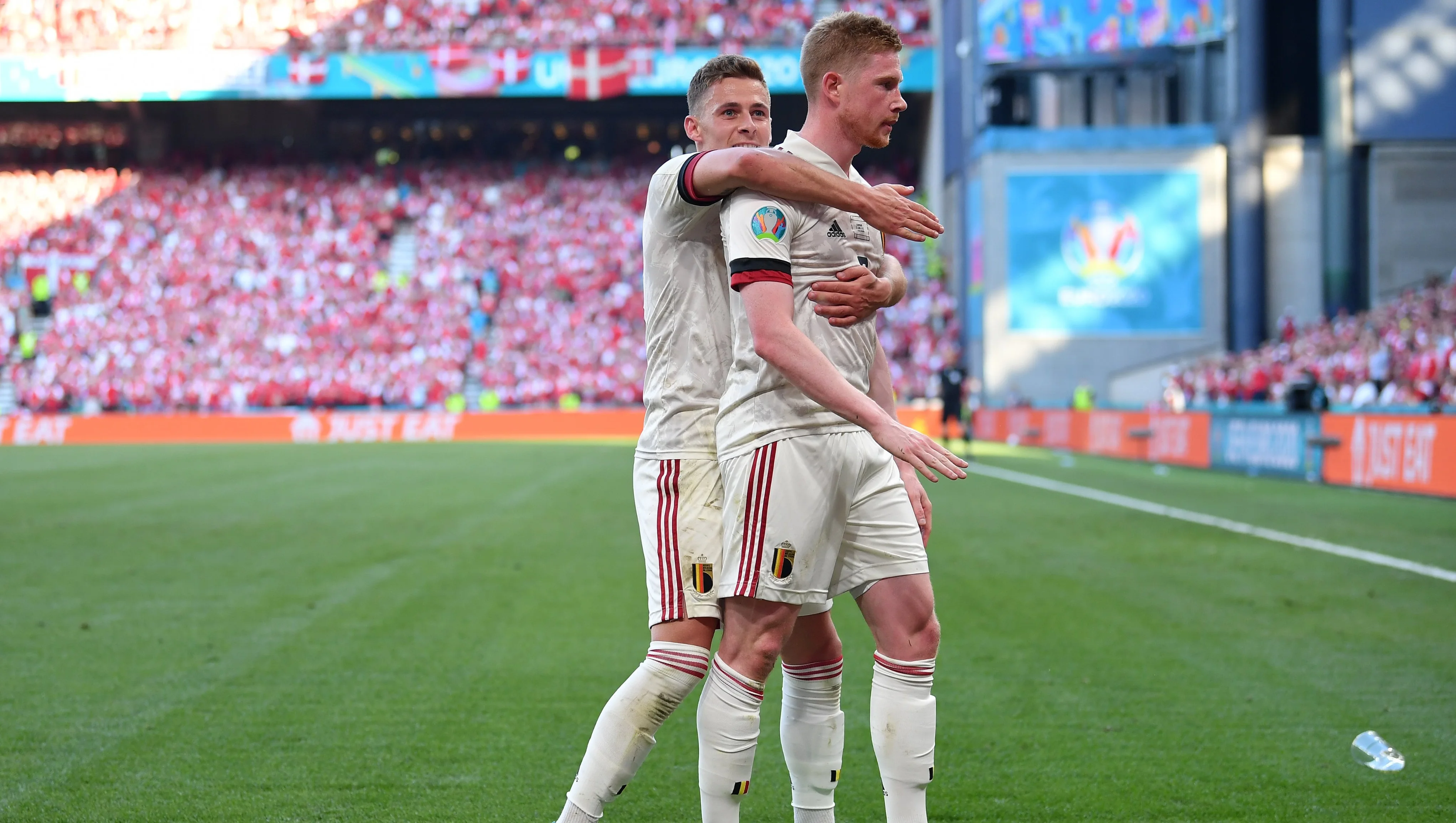 Конечно же, центральной фигурой вечера был Кристиан Эриксен. Бельгийцы подарили большую футболку с именем Эриксена и подписями своих сборников с пожеланием здоровья. На трибунах появились баннеры в честь Кристиана. А на 10-й минуте Бёрн Кюйперс остановил игру, и весь стадион долго аплодировал.