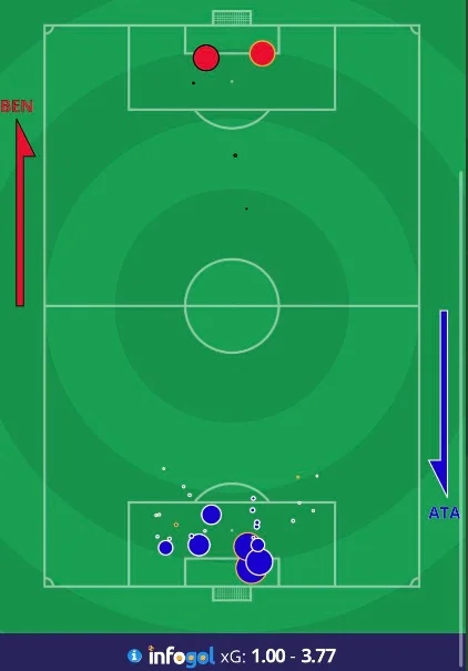 В то же время нельзя не отметить закономерность итогового результата. Команда знаменитого Пиппо Индзаги по ожидаемым голам наиграла ровно на один забитый мяч. Аталанта – на 3.77. Получается, что команды забили все, что создали, но реализацию тех же бергамасков и близко не назовешь идеальной. Удары Госенса и Сапаты в первом тайме имели большие шансы стать голевыми – в отличие от роскошного выстрела Муриэля, голевая вероятность которого составила всего 3%. Да и гол Иличича вышел несколько случайным благодаря рикошету, но в целом Аталанта наиграла почти на 4 гола – 26 ударов по воротам, из них 15 попали в створ. Логичность и справедливость победы гостей не подвергается никаким сомнениям. 12:2 в последних трех матчах чемпионата и серия из 7-ми поединков без поражений в Серии А – Аталанта уже в зоне Лиги чемпионов!