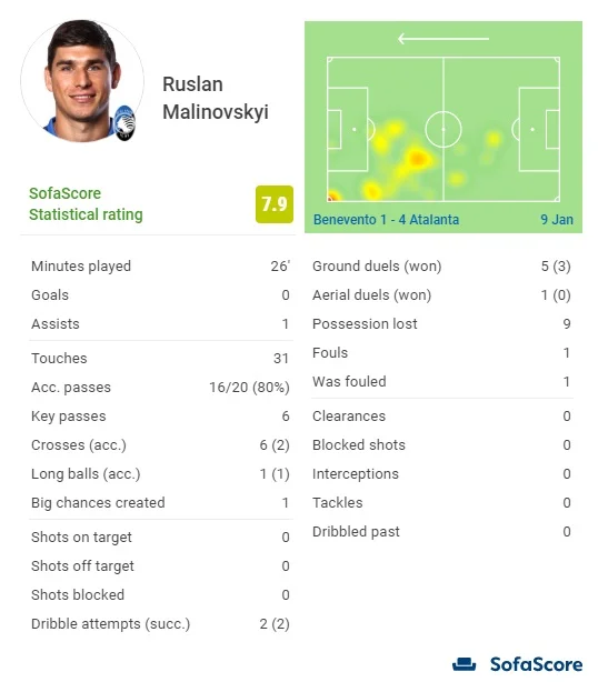 Руслан вышел на поле вместо Пессины, который провел бледную игре и стал худшим полевым игроком Аталанты по оценкам Sofa Score – 6.5. Зато Малиновский вошел в игру очень активно – именно после его выхода Аталанта вернула игру под свой контроль, забив три мяча.