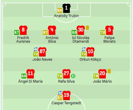 Трубин за свою игру получил одну из самых низких оценок в команде – 6,9 (меньше лишь у защитника Антониу Силвы и нападающего Каспера Тенгстедта – по 6,7 балла). Украинец в матче совершил 4 сейва (два из-за пределов штрафной), сделал 27 касаний к мячу, лишь одна из его шести передач дошла до адресата, а точность его пасов составила 72%.