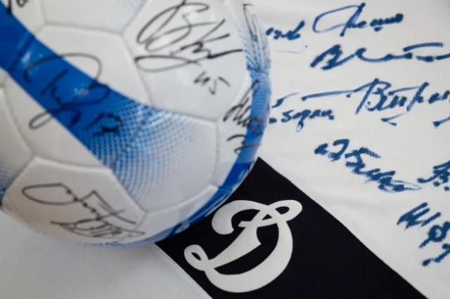 Присутствующие на встрече Почетный президент ФФУ, вице-президент УЕФА Григорий Суркис, футболисты легендарной команды Владимир Мунтян и Леонид Буряк поблагодарили Порошенко за внимание к футболу и подарили футболки - одну, в которой динамовцы вышли на поле 40 лет назад, и современную, с номером "12".