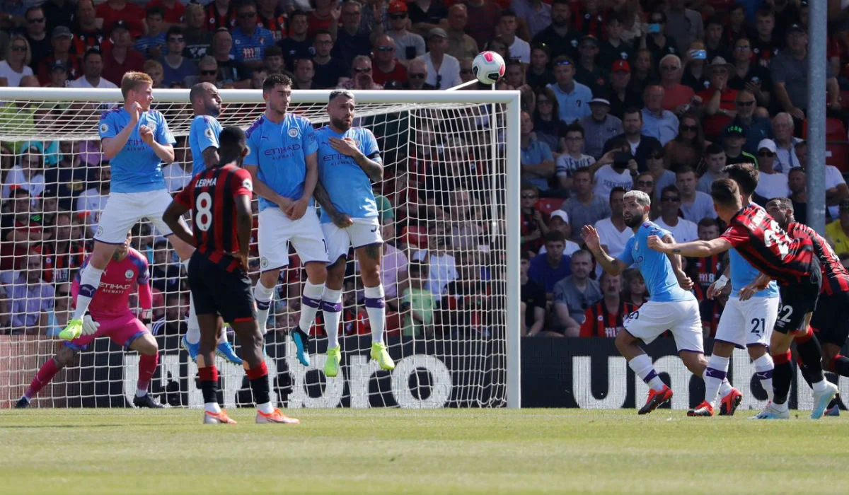 В компенсированное арбитром время к первому тайму матча Борнмут – Манчестер Сити арбитр назначил штрафной удар. К мячу подошел Харри Уилсон, который шикарным ударом в "девятку" сократил отставание Борнмута в счете. Первый тайм завершился победой подопечных Хосепа Гвардиолы со счетом 1:2.