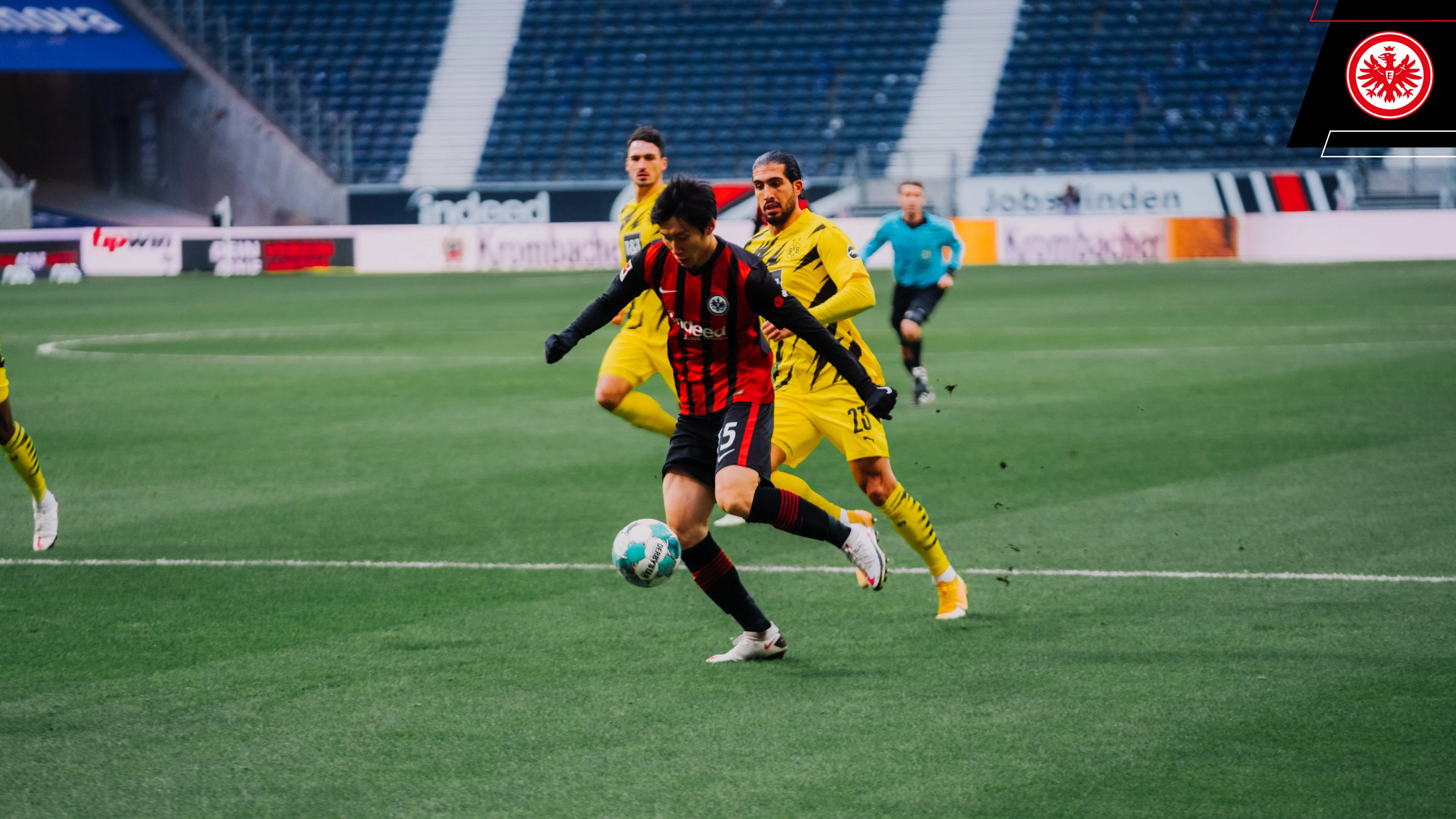 Центральным матчем первого временного слота субботы стала встреча между Айнтрахтом и Боруссией Д во Франкфурте. Дортмундцы после домашней осечки с Кёльном в прошлом туре не имели права на ещё одну неудачу, но первый тайм они провели ужасно, пропустив уже на 9-й минуте – это Камада получил заброс от австрийца Хинтерэггера за спины защитникам и переиграл Бурки ударом в дальний угол. Впрочем, на 26-й минуте Санчо с разрезного паса Рейны на левый угол вратарской мог сравнять счёт, однако выстрелу англичанина немного не хватило точности.