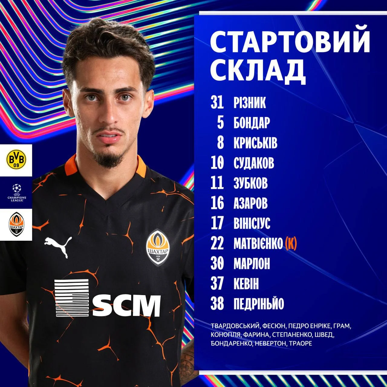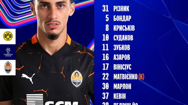 Шахтер: Ризнык – Винисиус, Бондар, Матвиенко, Азаров – Крыськив – Зубков, Марлон, Судаков, Кевин – Педриньо