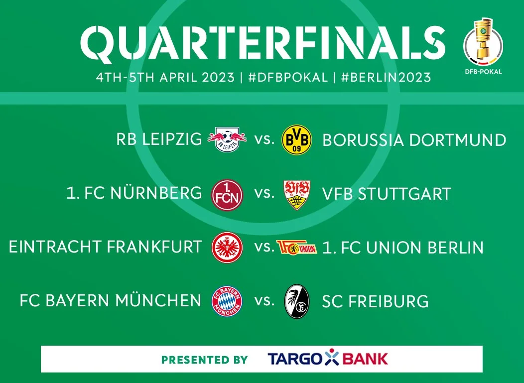 Состоялась жеребьёвка 1/4 финала Кубка Германии. Рекордсмен по количеству побед в турнире – Бавария – встретится с прошлогодним финалистом, а действующий победитель турнира – РБ Лейпциг – примет на своём поле дортмундскую Боруссию.