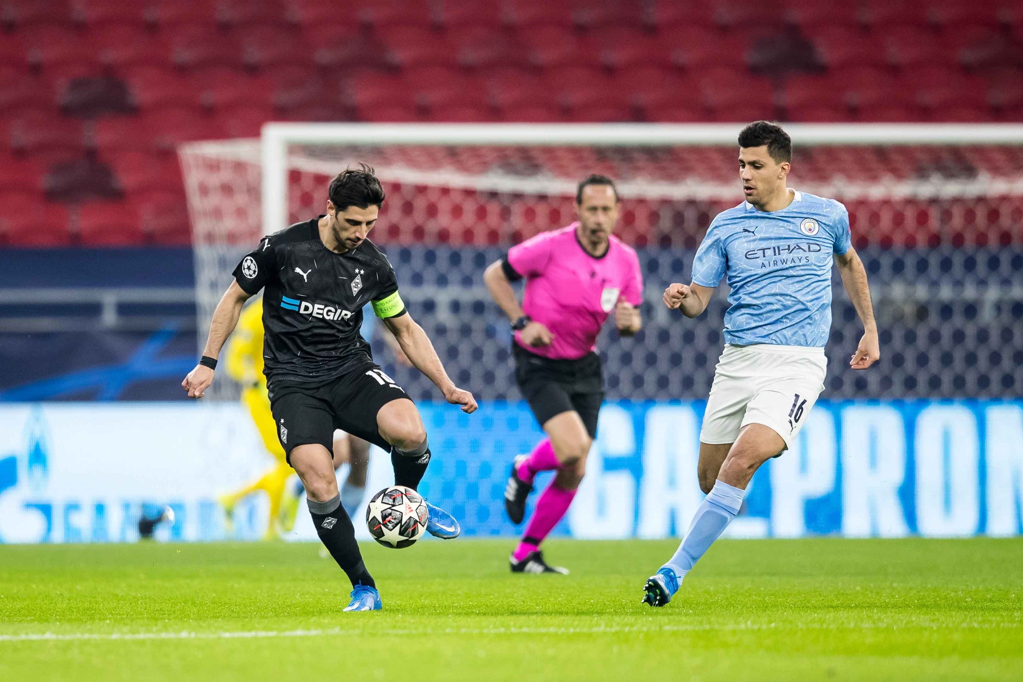 Забитый "горожанами" мяч немного успокоил игру. До перерыва напомнили о себе лишь Канселу и Фоден, но удары этого дуэта пролетели над воротами Зоммера. Гладбах смог ответить лишь читаемым ударом Плеа в руки Эдерсона после подачи Лайнера.