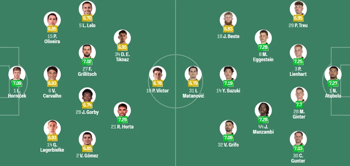 Фрайбург: Атуболу – Треу, Линхарт, Гинтер, Гюнтер – Эггештайн, Манзамби, Сузуки – Бесте, Матанович, Грифо