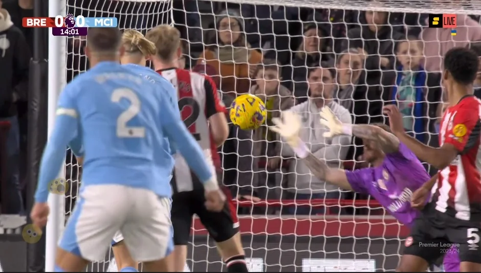 Брентфорд организовал контратаку, которая завершилась выходом Тоуни один на один с Эдерсоном. Кипер Ман Сити выиграл дуэль, после чего рефери остановил игру, зафиксировав офсайд. Флеккен ответил уже вторым сейвом после удара Альвареса, после чего потащил еще и пушку Уокера! Очень насыщенные стартовые 15 минут, героем которых стал кипер Брентфорда.