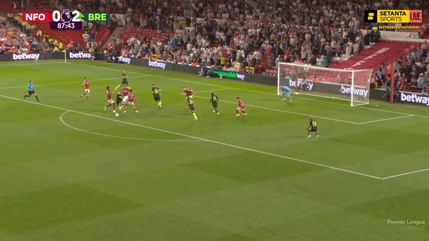 Ох как красиво Ярмолюк оттер техничного и резкого Элангу, который уже прошел его партнера, в своей штрафной. Фанаты сразу сравнили это действие с Зиданом! А могло быть очень горячо. Затем, правда, 21-летний украинец отдал неоправданно рискованный пас под прессингом. Брентфорд запустил свечу над владениями Флеккена, но вратарь подчистил. Теперь позволяет Ярмолюку пройти себя на дриблинге, Элангу останавливает его напарник ценой тактического фола. Изрядно давит Форест, даже суперуверенный в себе Мбемо теряет владения в своей трети.
