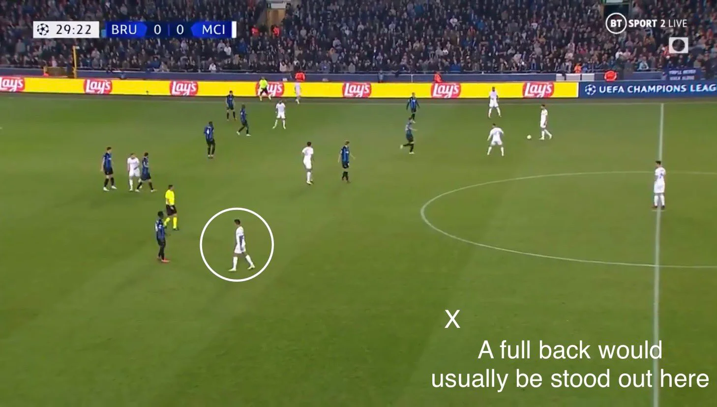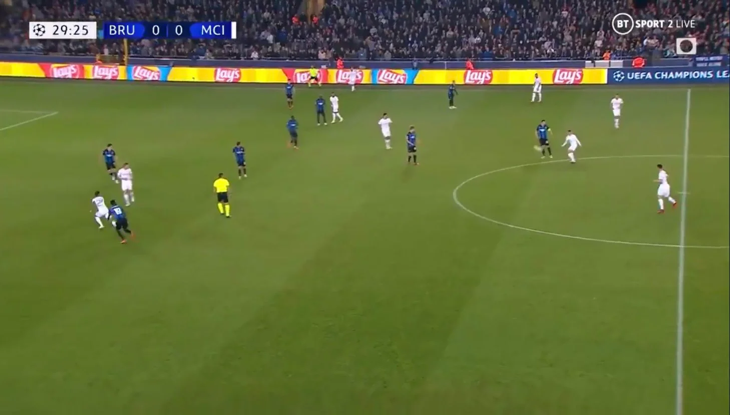 Полное преимущество гостей в первые 10 минут. Причем самые острые моменты возникают тогда, когда Брюгге рискует сделать робкую вылазку вперед. Дальний заброс на Грилиша завершился голом, но Джек сфолил перед тем, как перебросить голкипера. В еще одном эпизоде Фодена в последний момент перед пустыми воротами опередил защитник. После оригинально разыгранного стандарта центральный защитник Ляпорт с позиции вингера сбрасывал в центр, а опорник Родри в одиночестве расстреливал с двух метров. Еще один гол отменен, на этот раз из-за офсайда.