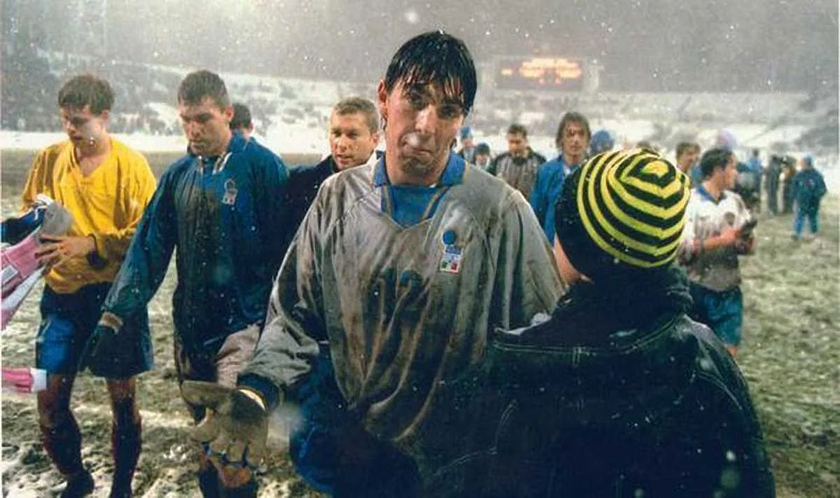 Италия играла в Москве против России в плей-офф отбора на ЧМ-1998. Джиджи было 19, он вышел на поле вместо Пальюки, которого травмировал соперник. Несмотря на сейвы Буффона, россияне сумели сравнять счет, но на выезде проиграли и на Мундиаль во Францию не полетели.