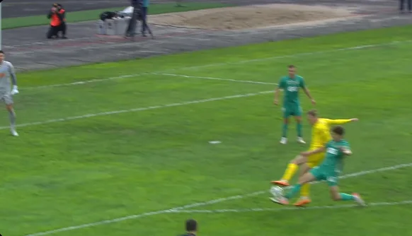 Довольно курьезным стал эпизод с участием Пономаренко на 8-й минуте, когда тот выиграл подбор и переиграл защитника в штрафной площадке. Оказавшись в метрах шести от ворот под острым углом, Матвей выполнил неуклюжий удар куда-то в сторону.