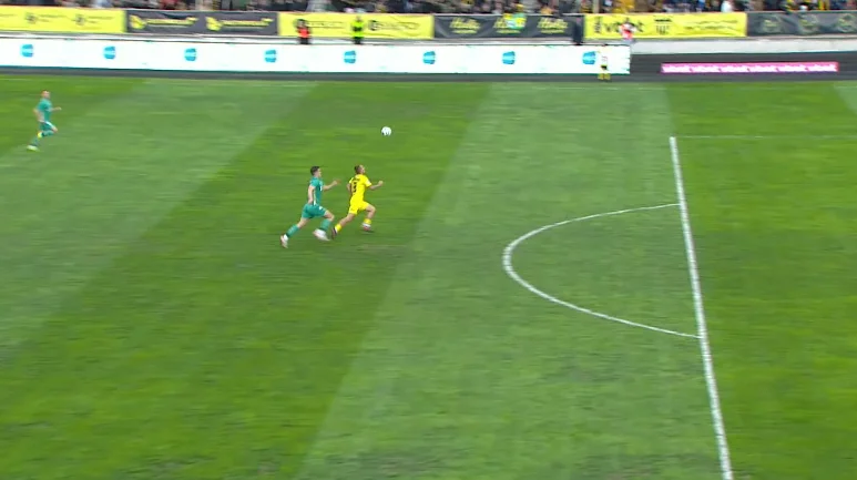 Так, еще на 13-й минуте Биловар отдал пас назад с фланга, а Кожушко побежал прессинговать Нещерета. Олег едва не отобрал мяч – Руслану пришлось серьезно побороться.