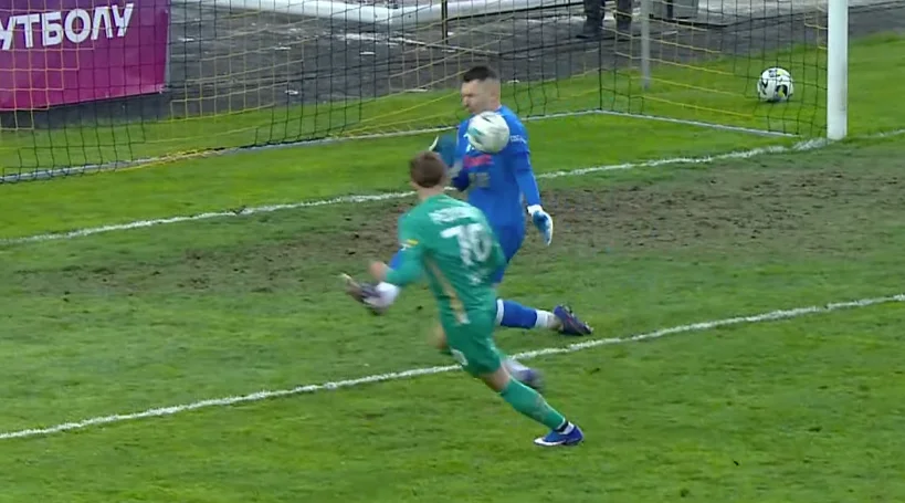 На 20-й же минуте вынос в направлении Дахновского неожиданно вылился в выход один на один с ударом, который парировал Нещерет. За Виталием не успел Михавко.