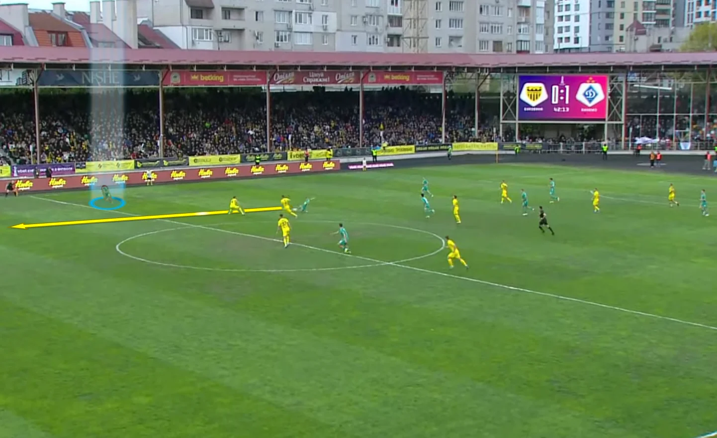 В целом Буковина сдерживала Динамо, держась в низком блоке. При этом команда пыталась прессинговать в борьбе за ничейный мяч на чужой половине и даже мешала билд-апу. В какой-то момент тактика начала приносить успех – киевляне не могли выйти в атаку и получили несколько неприятных ситуаций у собственных ворот.