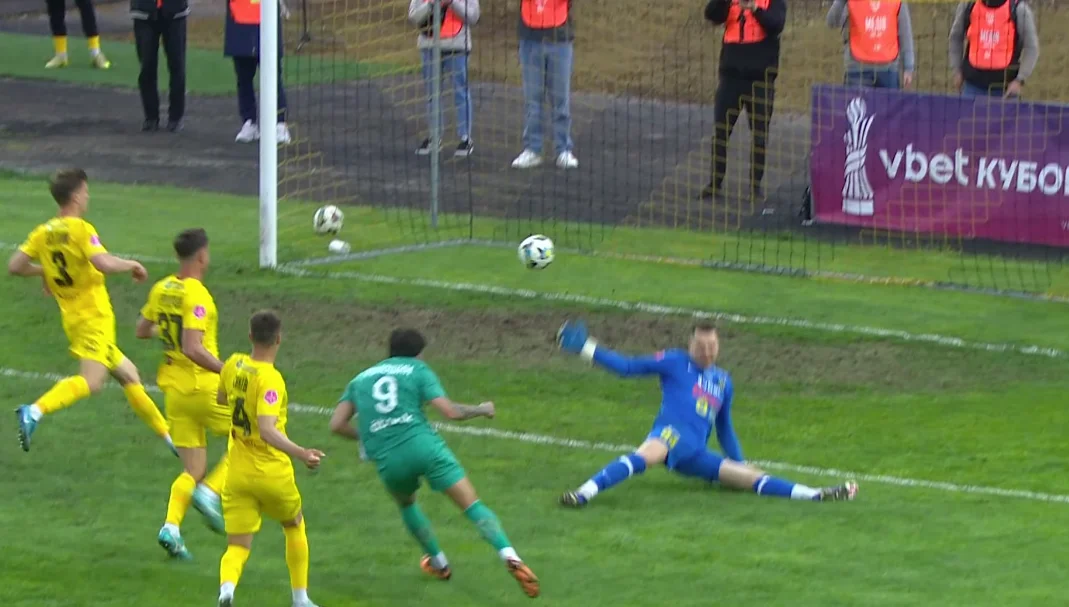 Чуть позже Дахновский получил разрезной пас в штрафную (Биловар не смог перехватить мяч), но дальнейший прострел накрыли. Виталий не сбавлял оборотов – и же на 58-й минуте качнул Караваева и покатил вдоль линии вратарской. Там началась суета, которая завершилась выстрелом Кожушко, однако Нещерет парировал головой!