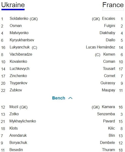 51. Сборная Украины активно начала вторую половину встречи. Игра проходит на половине поля французов. Зинченко выполняет угловой удар, но никакой опасности не возникло.