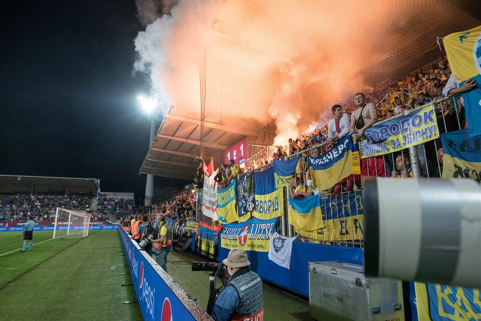 Чехия – Украина: полиция задерживала украинских фанатов прямо на стадионе / фото Е. Кравс