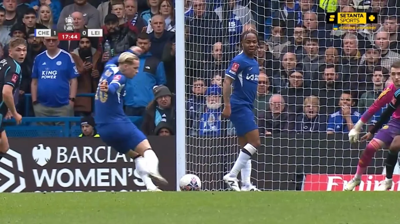 Палмер крутил в стиле Мавидиди, не получилось. Мудрик с Джексоном неплохо разыгрывают, но Стерлинг пас Михаила реализовать не сумел – в двойной блок бросаются защитники Лестера. На добивании украинец, однако техничный навесной удар летит над воротами. Стерлинг покатил вперед, а Джексон элегантно разобрался с двумя защитниками и упал. Судья Энди Мадли сначала выписал желтую Дойлу и назначил пенальти, но фол был за мгновение до штрафного, поэтому красная и стандарт. Бездарно пробил Стерлинг. "Даже в регби это было бы мимо", – нечего добавить к комментарию Дмитрия Джулая.