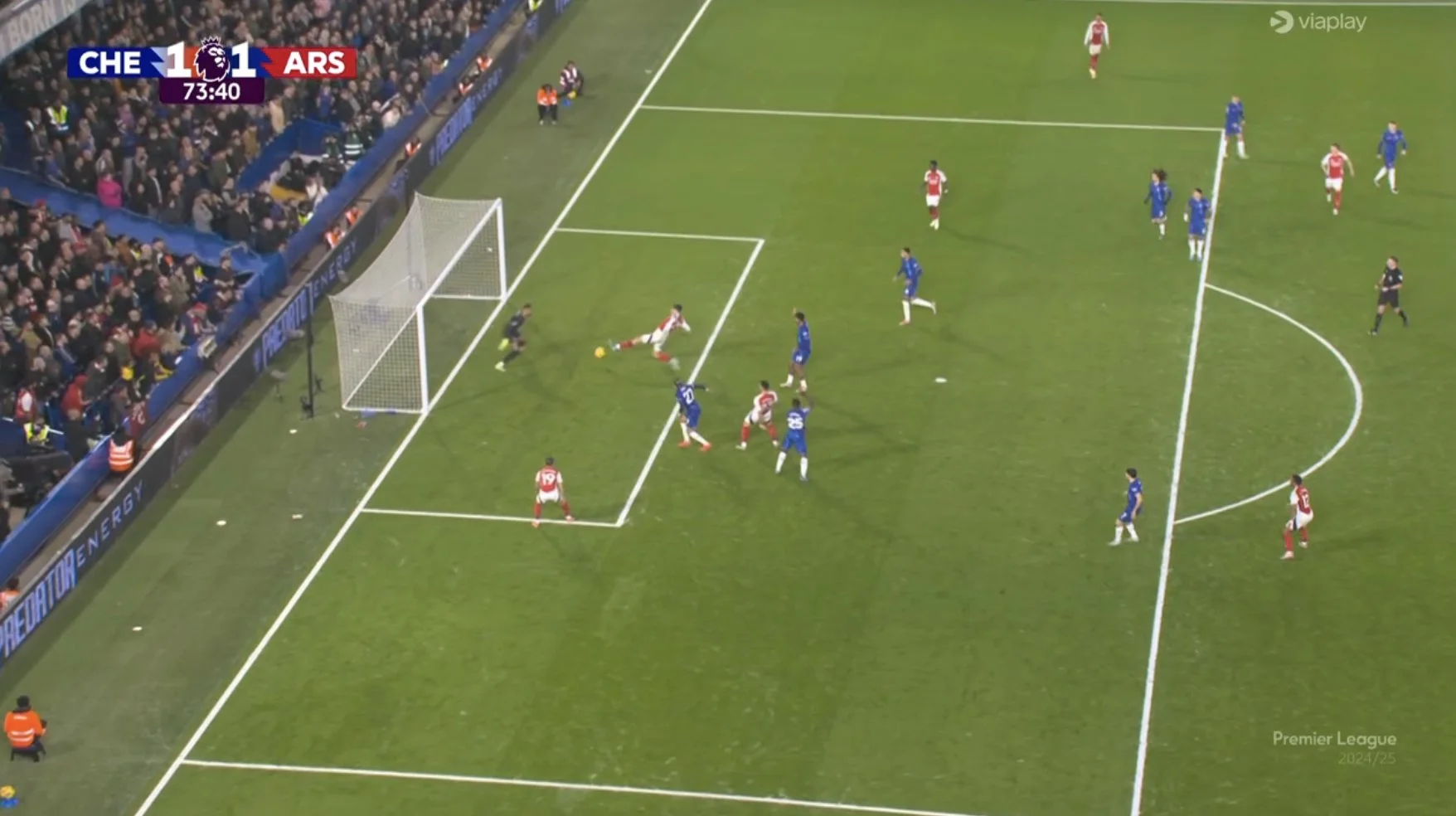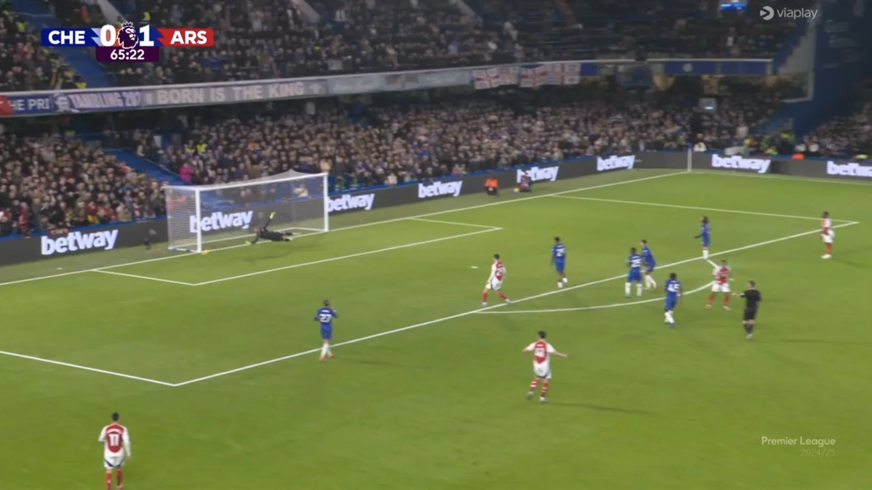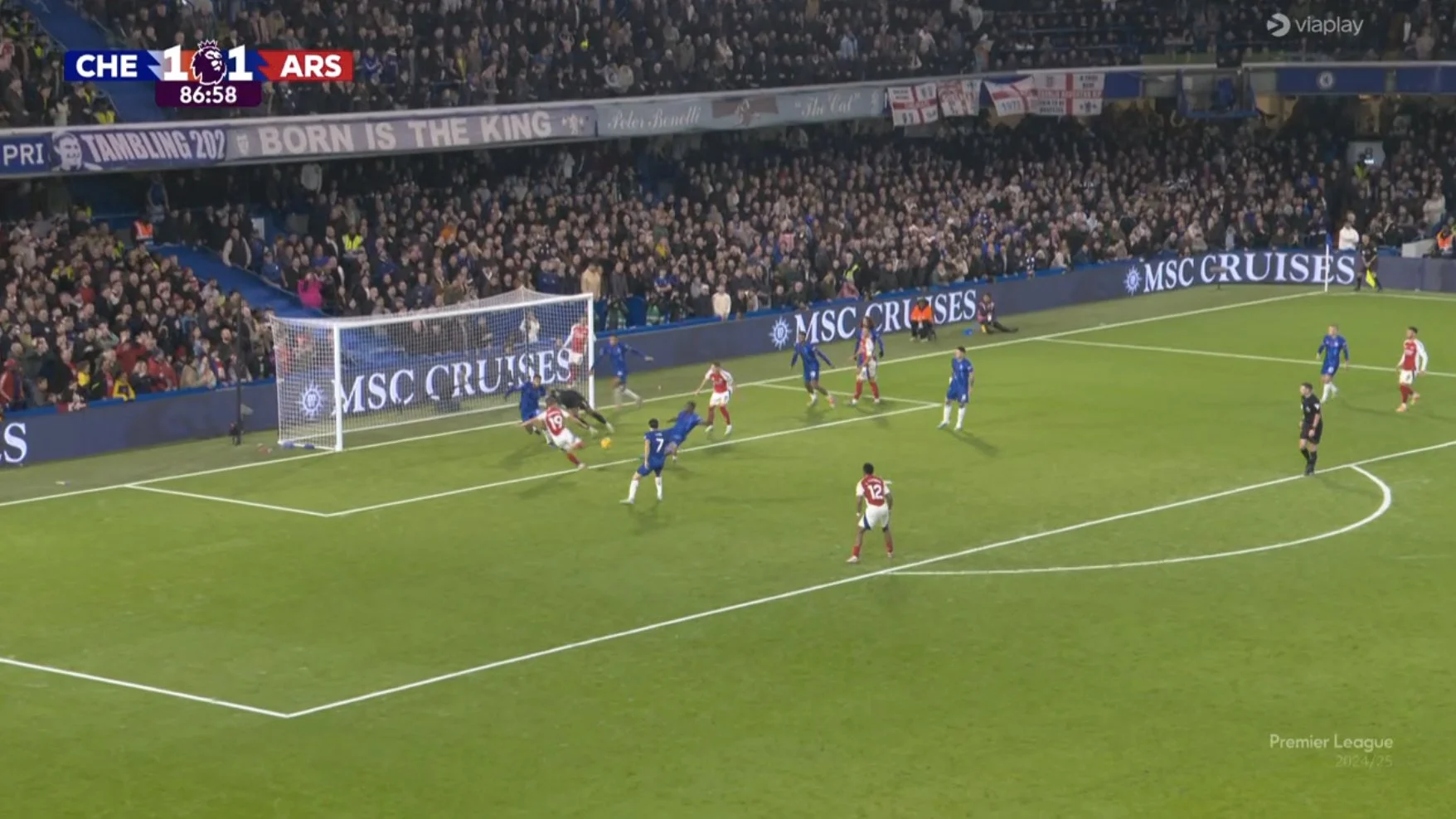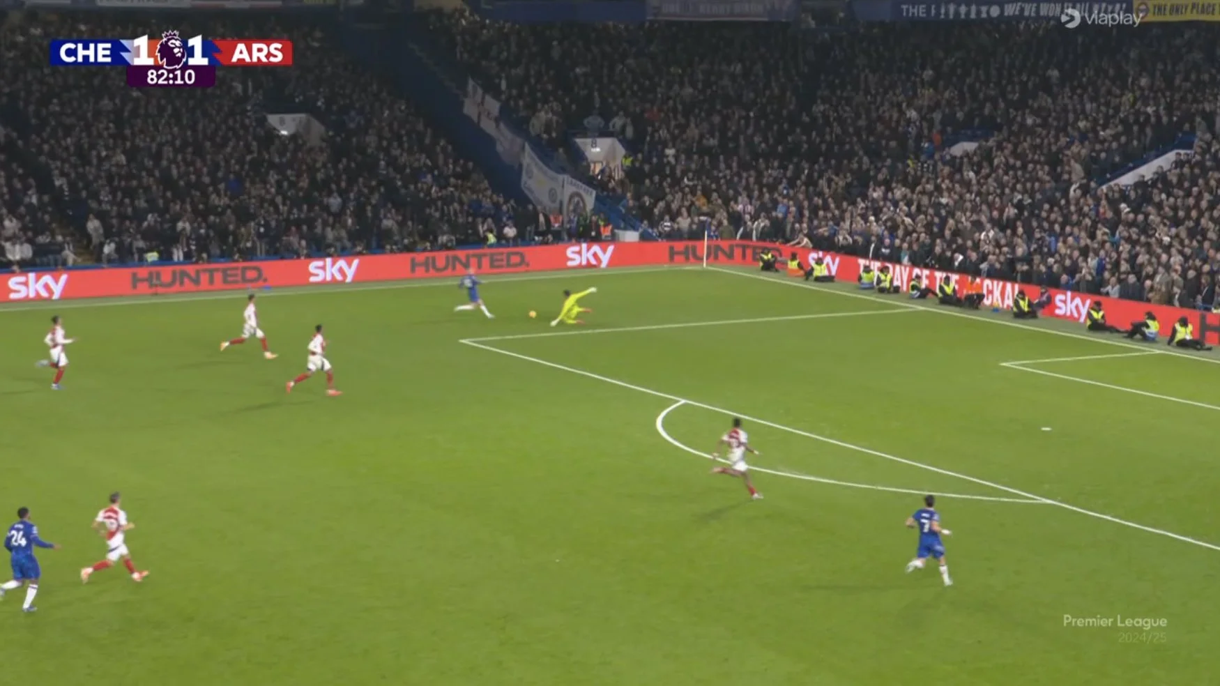 На 70-й минуте Энцо зацепился за мяч в центре поля и отдал пас в ноги Нету. Педру, воспользовавшись гигантской дырой в опорной зоне Арсенала, пробежал до линии полукруга и мощно зарядил в правый нижний угол – без шансов для Райи. 1:1!
