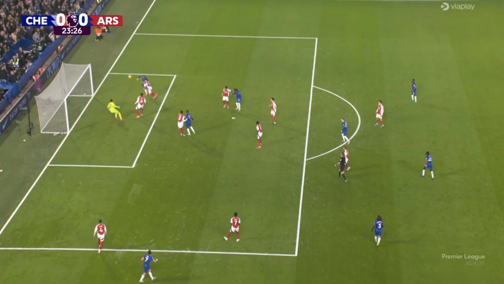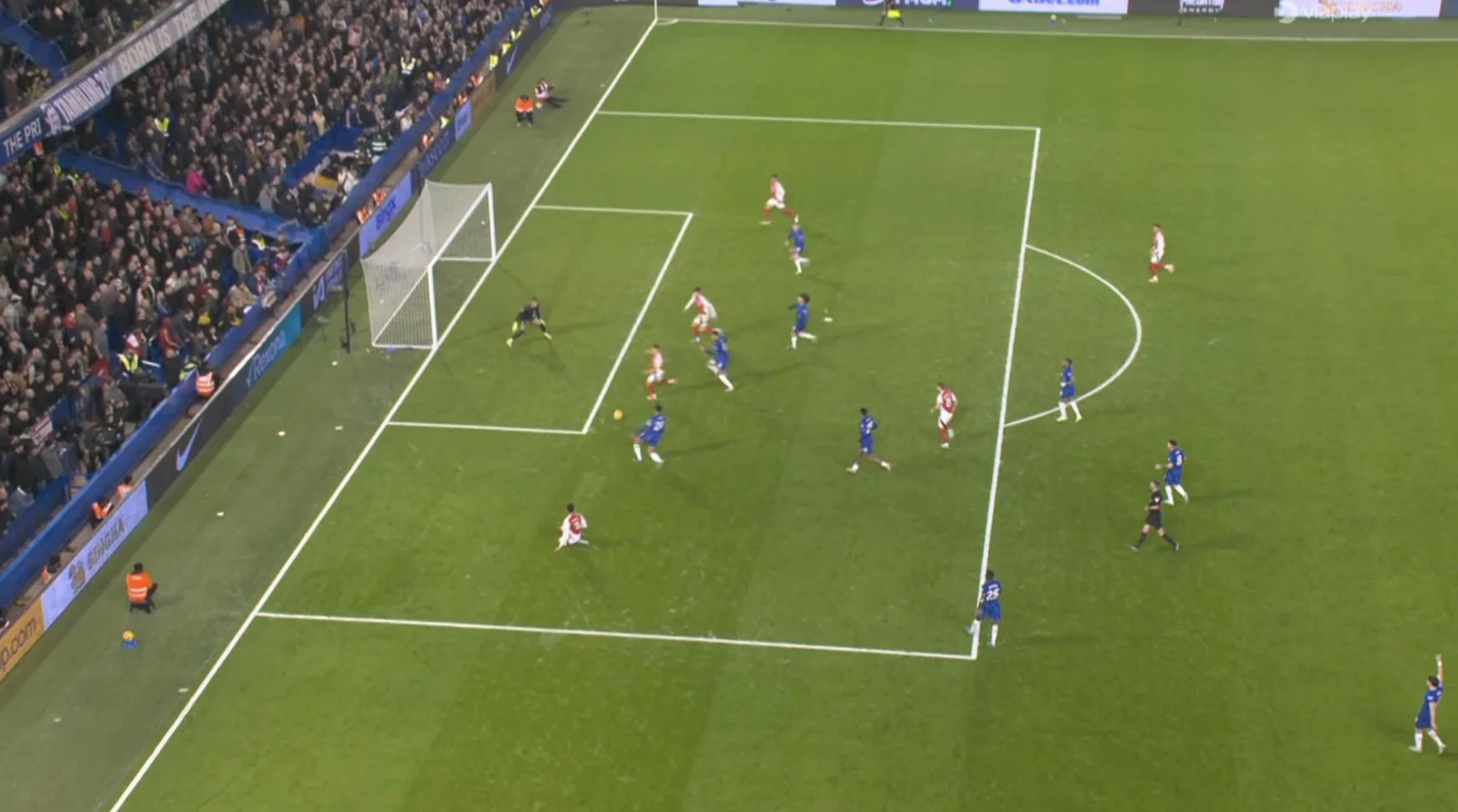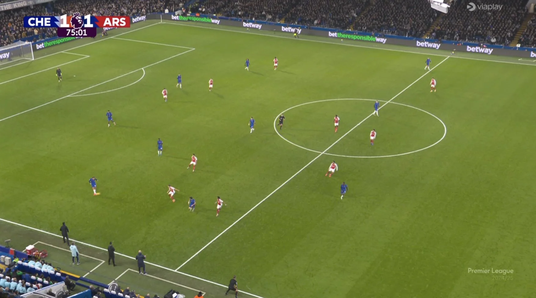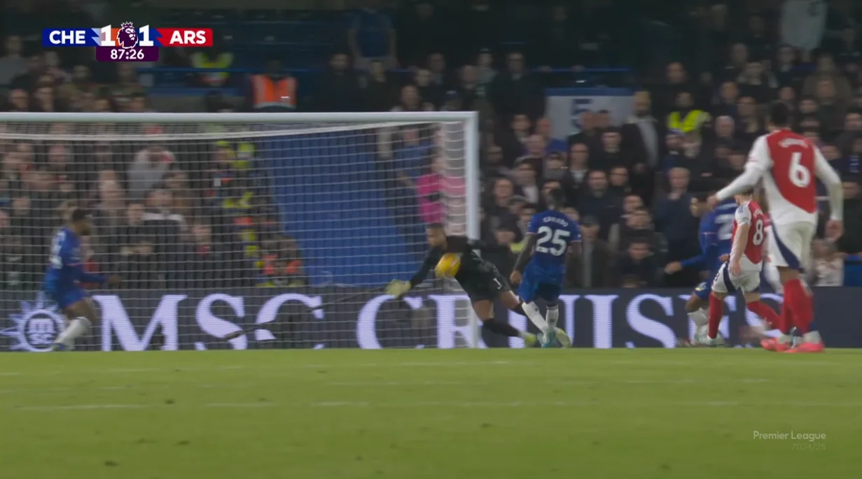На 70-й минуте Энцо зацепился за мяч в центре поля и отдал пас в ноги Нету. Педру, воспользовавшись гигантской дырой в опорной зоне Арсенала, пробежал до линии полукруга и мощно зарядил в правый нижний угол – без шансов для Райи. 1:1!