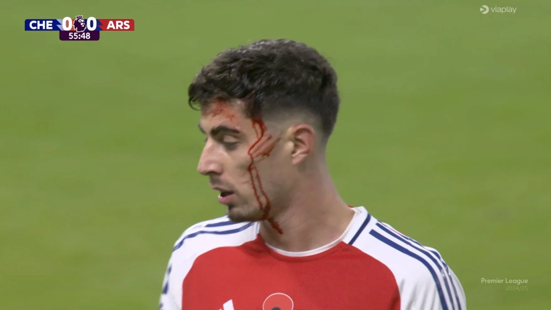 Еще через три минуты камеры выхватили окровавленное лицо Хаверца. Кто-то рассек немцу голову. Нападающий присел и пытался дождаться помощи на поле, однако арбитр Майкл Оливер начал его прогонять за боковую линию. Да еще и желтую карточку показал! Разъяренные фаны тут же начали петь оскорбительные песни о рефери.
