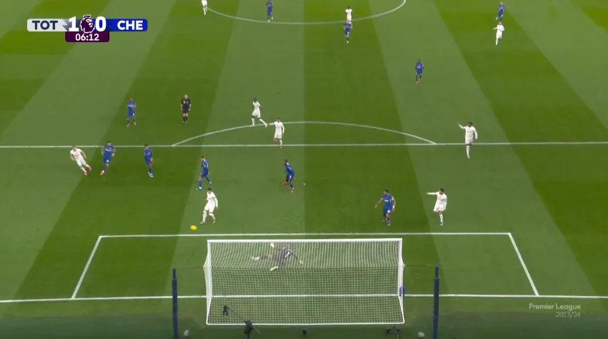 Николя влетел на левый угол штрафной, эффектно качнул Порро и нанёс мощный удар Викарио парировал, а Галлахер сыграл на добивании. Викарио спас и здесь, а уже потом лайнсмен дал сигнал об офсайде у Джексона.