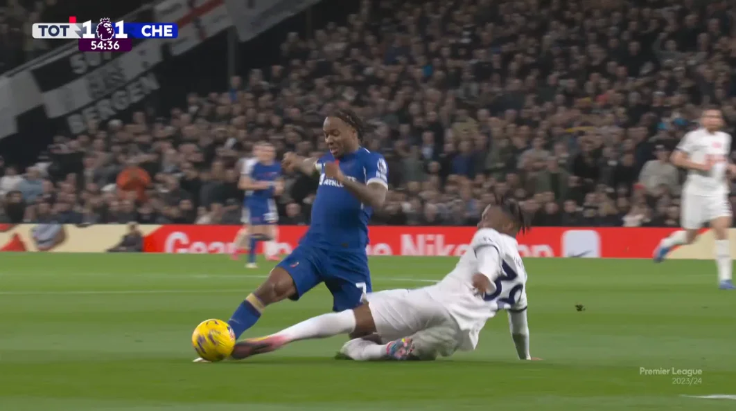 Такой футбол не мог остаться без последствий для Тоттенхэма. На 55-й минуте "шпоры" хватонули контратаку 3-в-2. Галлахер запорол её неудачным пасом, но отскок на правом фланге подхватил Стерлинг – Удоджи же влетел в Рахима жёстким подкатом.