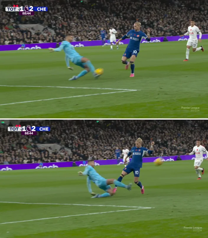 Как и в случае со скандальным голом Ньюкасла в ворота Арсенала, эпизод просматривали минут пять со всех ракурсов. Сначала VAR проверял офсайд у Джексона (он был), а затем повтор отмотали на несколько секунд назад. Там был замечен грубый фол Ромеро против Энцо Фернандеса. В итоге гол отменили, назначив пенальти.