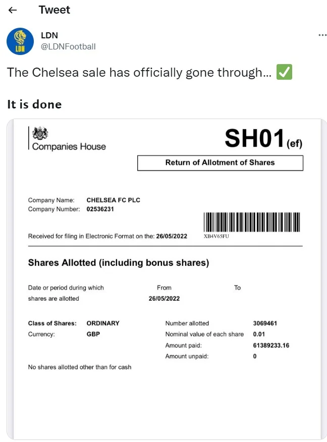 Челси окончательно получил нового владельца – сетью "гуляет" фото документа
