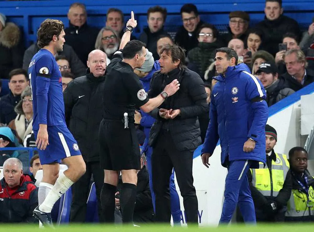 В 14 туре АПЛ Челси дома принимал Суонси, который ведет борьбу за выживание. В первом тайме после одного из моментов Антонио Конте был взбешен решением главного арбитра Нила Суорбрика, а свое недовольство выражал четвертому рефери Ли Мейсону, за что был отправлен из технической зоны. После удаления Конте действиями команды руководил его ассистент Анджело Алессио.