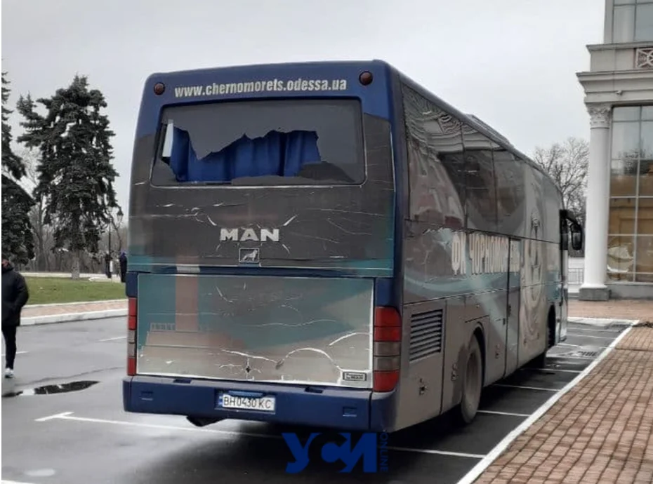Автобус одесситов подвергся нападению во время подъезда к стадиону на матч против Металлиста 1925, сообщает Оdessa Оnline.