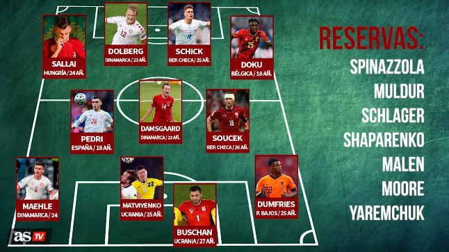 Среди одиннадцати лучших нашлось место голкиперу Динамо Георгию Бущану и защитнику Шахтера Николаю Матвиенко. Наибольшее количество представителей делегировала сборная Дании – Каспера Дольберга, Миккеля Дамсгорда и Йоакима Меле. Патрик Шик и Томаш Соучек представили Чехию. Еще четверо футболистов презентовали: Венгрию (Роланд Шаллай), Бельгию (Жереми Доку), Испанию (Педри) и Нидерланды (Дензел Дюмфрис).