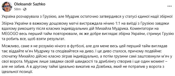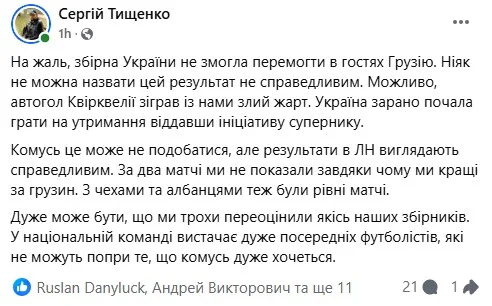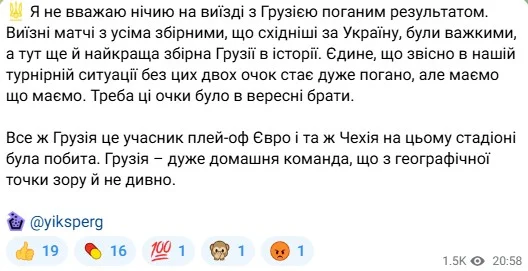 "Футбол 24" зібрав реакцію експертів та вболівальників на матч п'ятого туру Ліги націй Грузія – Україна (1:1).