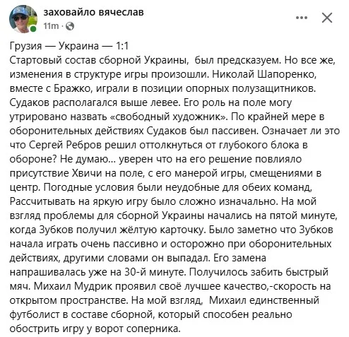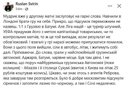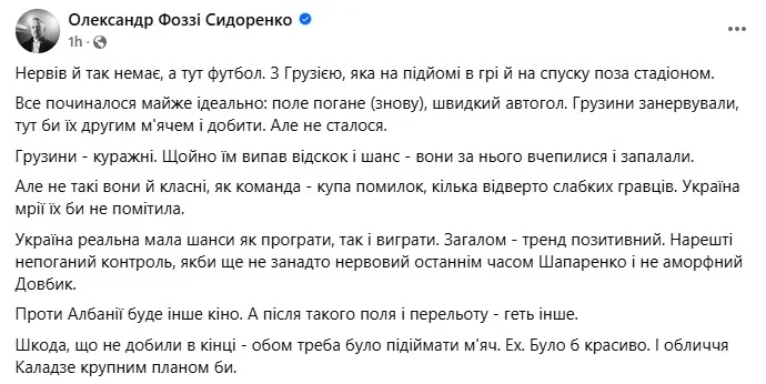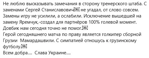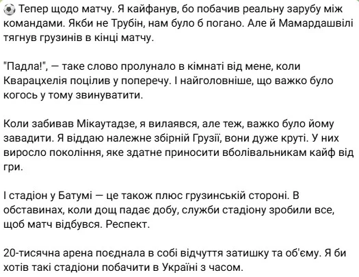 Данило Вереітін у своєму телеграм-каналі "Рахунок на табло" віддає належне Сакартвело.