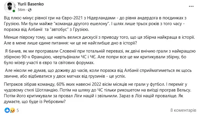 Колишній головред Футбол 24 Юрій Басенко – про деградацію національної збірної.