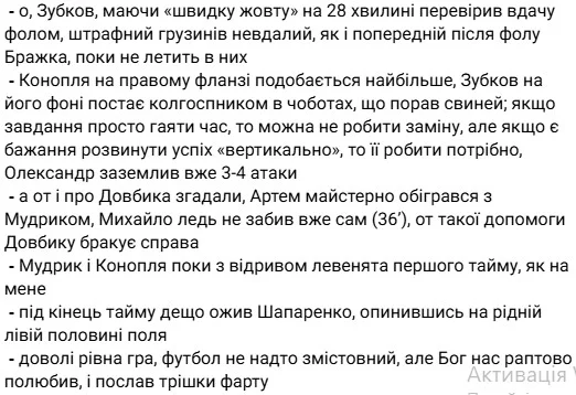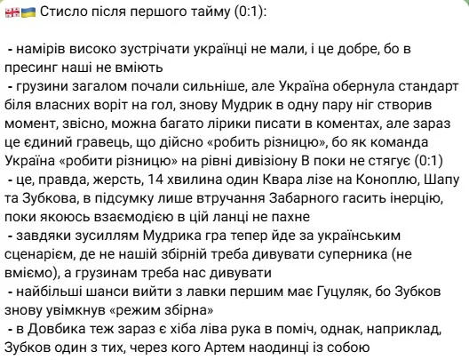 Михайло Смоловий, співведучий ТаТоТаке, на момент написання цього матеріалу встиг опублікувати тільки "стисло після першого тайму". На перерву наша збірна йшла з позитивними емоціями.