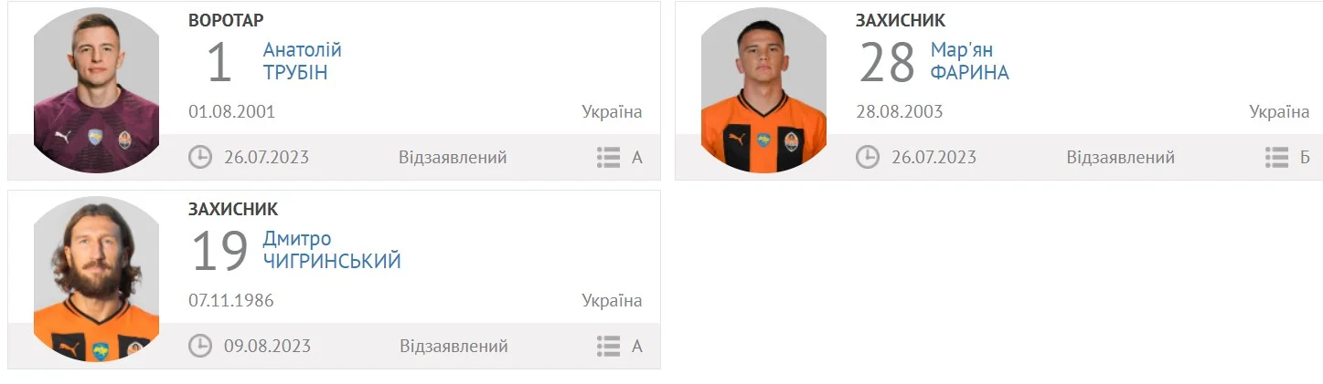 На сайте УПЛ Чигринского перевели в список отзаявленных игроков Шахтера.