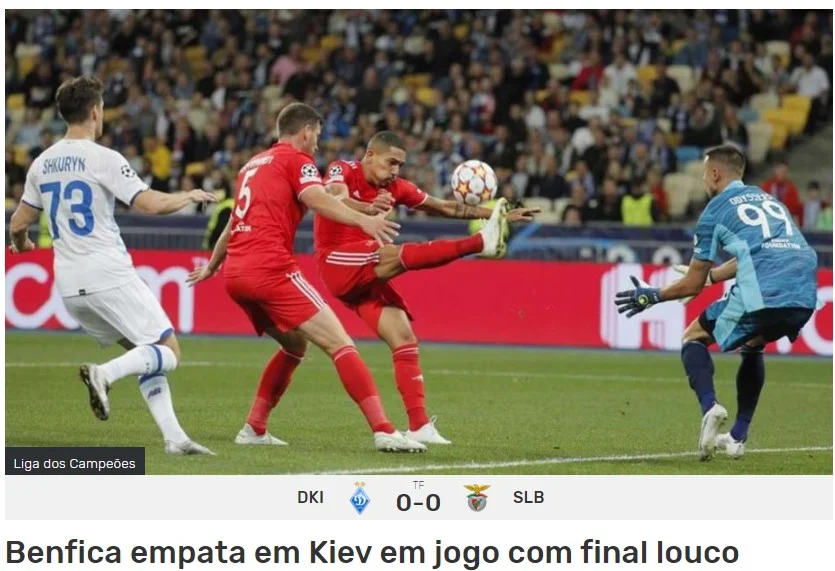 Киевское Динамо, казалось, не собирается рисковать ни на дюйм. Игра, что не соответствует выступлениям в украинской лиге: 7 матчей, 6 побед, одна ничья, 22 забитых мяча и лишь два пропущенных, оба дома. Однако, когда Бенфика уже смирилась с ничьей, украинцы поверили в победу. Если бы не Влаходимос и VAR, лиссабонцы остались бы с пустыми руками ".