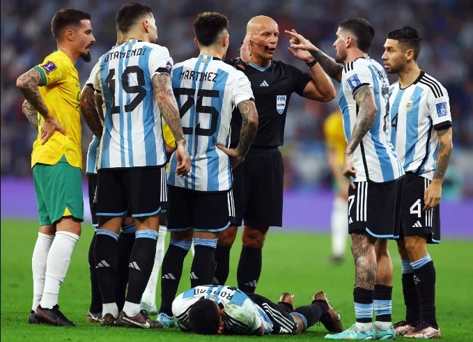 Вы видите, что он любит поговорить с арбитрами. Де Пауль – это некий "генерал полузащиты" сборной Аргентины. Он любит немного давить на судей. В этой встрече между Аргентиной и Австралией (2:1 в 1/8 финала – прим.) он с претензиями пошел на Томаша Листкевича, и мне пришлось вмешаться.