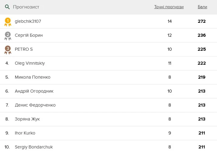 Топ-10 найкращих прогнозувальників тижня