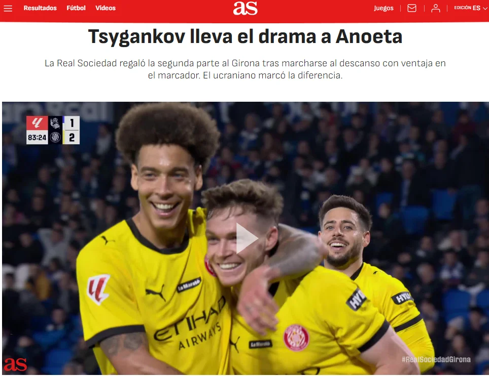 Виктор Цыганков снова отметился результативными действиями на легендарной Аноэте в Сан-Себастьяне. Дубль украинского вингера принес Жироне сверхважные три очка в борьбе за выживание. Испанская пресса аплодирует.