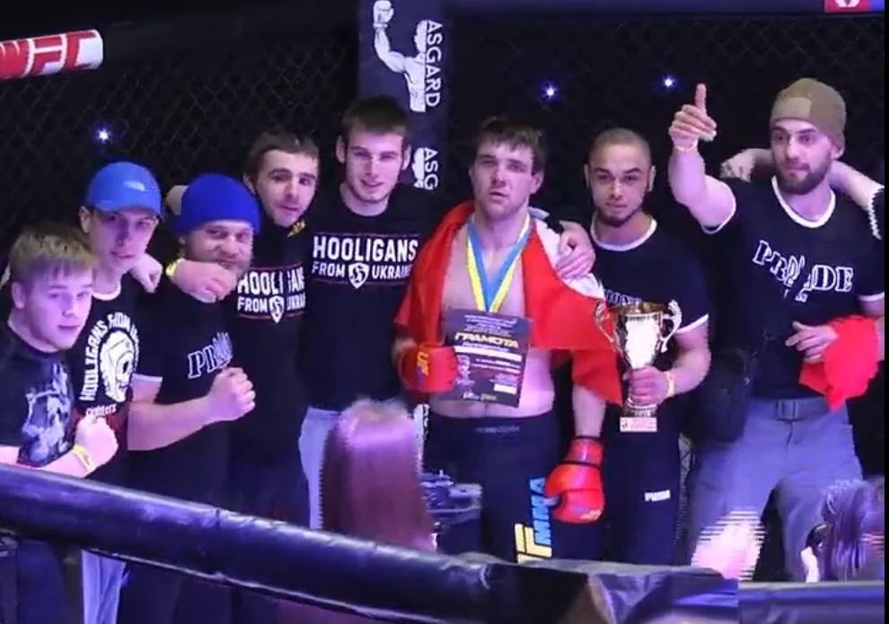 Богдан "Пірат" Кріль (праворуч) на змаганнях зі змішаних єдиноборств разом із учасниками фірми Pride. Фото: архів Остапа "Остапчика"