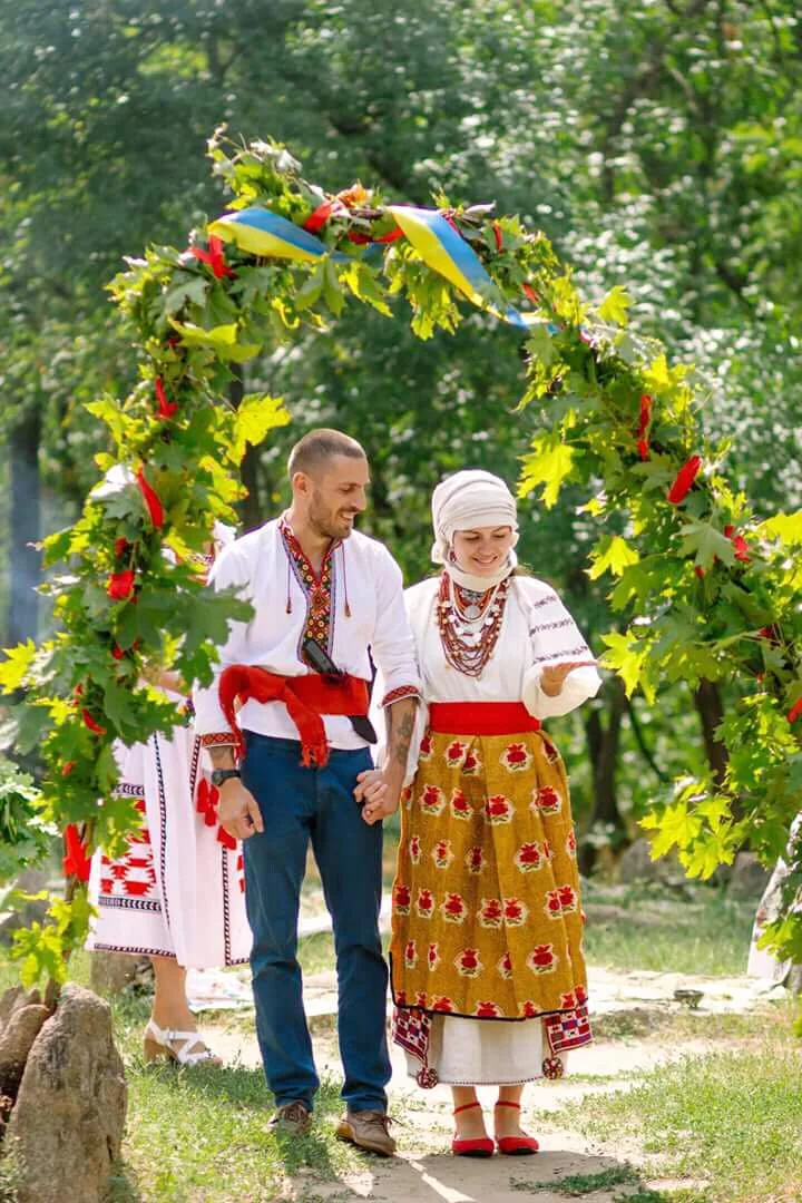 "Ми не хотіли гучного весілля. Тоді Олексій запропонував провести обряд вінчання на Хортиці. Вибрала собі старовинний одяг полтавської нареченої, в якому завжди мріяла вийти заміж. Олексію вишила сорочку. Він та його батьки – рідновіри, тож сам обряд вінчання провів їхній волхв на капищі. Мене садили на кожух. Ми проходили через калинові ворота – сплетену з гілок калини арку. Все дійство тривало близько двох годин. Було враження, що ми знімалися в якомусь фільмі".