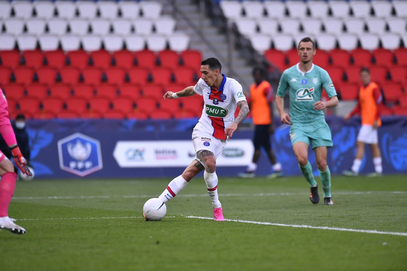 Хавбек ПСЖ Анхель Ди Мария продемонстрировал роскошную технику в четвертьфинале Кубка Франции против Анже (5:0).