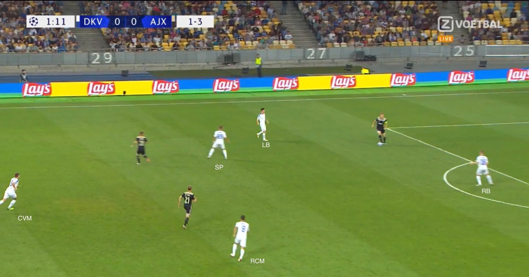 На контратаки, якими колись так славилось Динамо, годі було й сподіватись. Кияни лише двічі за матч швидко вибігали вперед, жодного разу не пробивши по воротах. На диво, Аякс, який частіше контролював м'яч, провів 6 контратак, створивши значно більше небезпеки, ніж команда Хацкевича з позиційних наступів: 0.46 xG у гостей проти 0.34 xG у господарів.