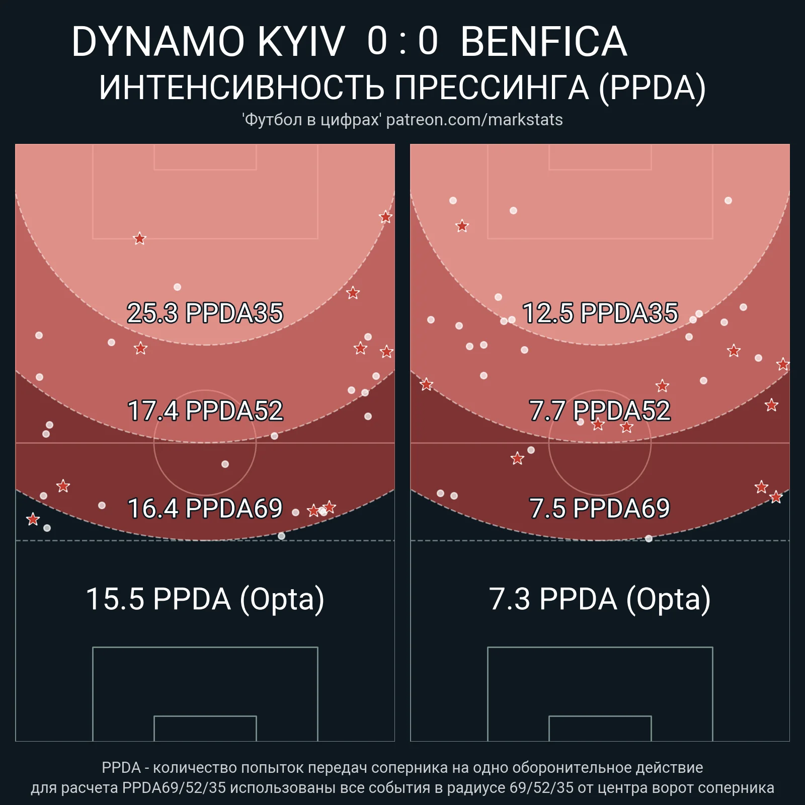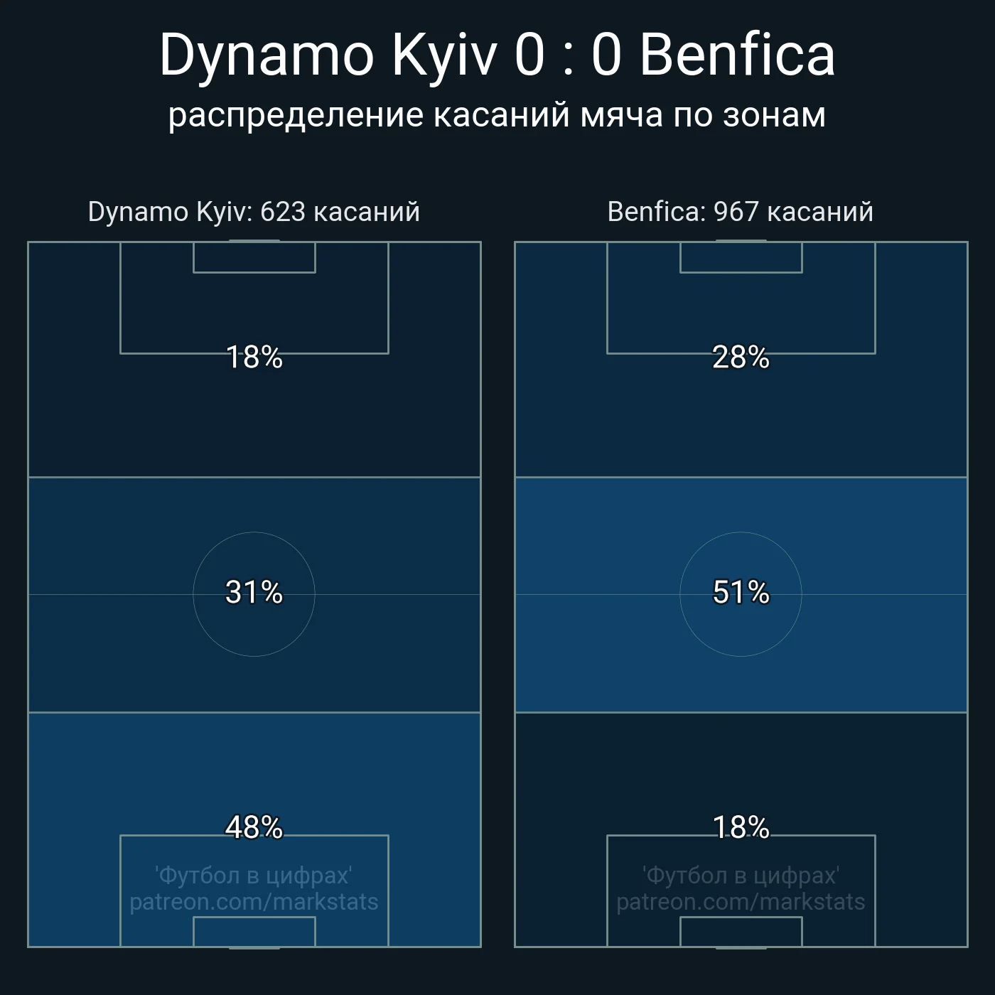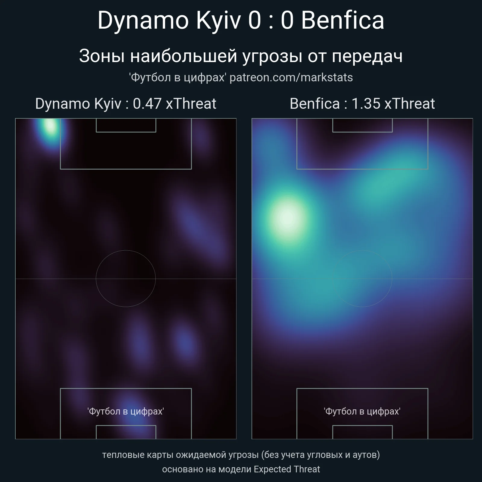 Динамо отдало всего 1 передачу в радиус 20-ти метров от ворот, выдало 73% точности пасов, и наиграло на 0,3-0,6 ожидаемых голов при трех ударах из пределов штрафной – один из них заблокировали, а другие два произошли на 90 + 3-й минуте. Если бы гол Шапаренко засчитали, это был бы феерический отскок, абсолютно ничем не заслуженный.