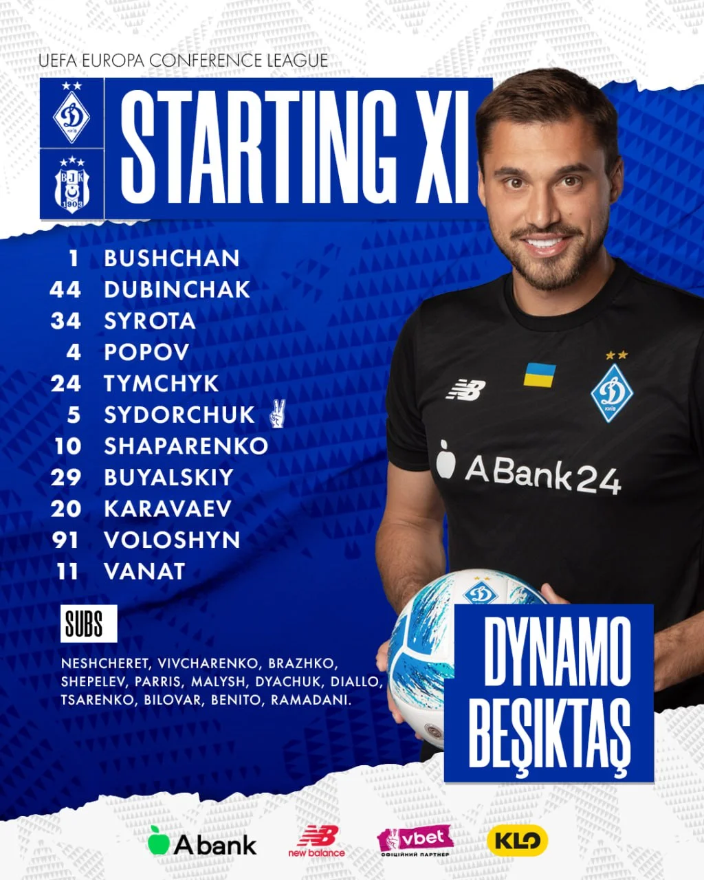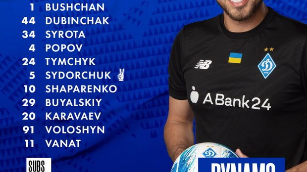 Динамо: Бущан – Тымчик, Попов, Сирота, Дубинчак – Сидорчук (к), Шапаренко – Караваев, Буяльский, Волошин – Ванат