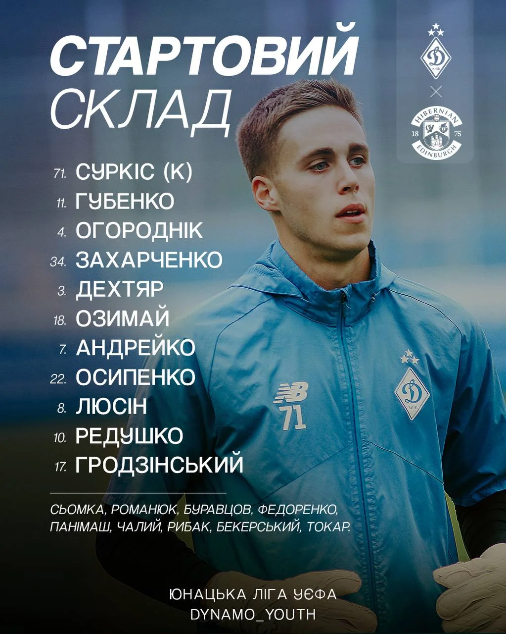Динамо – Хиберниан: стартовые составы и онлайн-трансляция матча Юношеской Лиги УЕФА